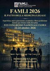 CONGRESSO NAZIONALE FAMLI 2026 IL PATTO DELLA MEDICINA LEGALE ESPERIENZA, NUOVE GENERAZIONI, ACCADEMIA E LIBERA PROFESSIONE INSIEME PER IL FUTURO DELLA DISCIPLINA |